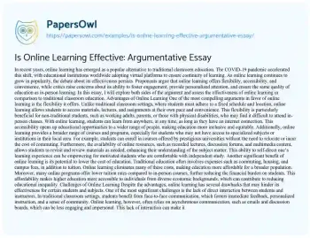 Is Online Learning Effective: Argumentative Essay