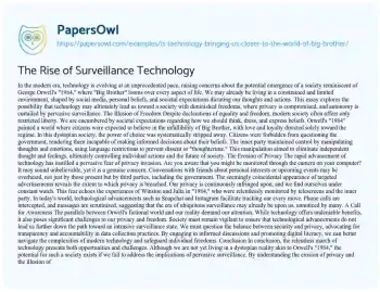 The Rise of Surveillance Technology. (2023, Feb 07). Retrieved from https://hub.papersowl.com/examples/is-technology-bringing-us-closer-to-the-world-of-big-brother/