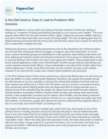 Is the Diet Good or Does It Lead to Problems With Anorexia. (2022, Aug 27). Retrieved from https://hub.papersowl.com/examples/is-the-diet-good-or-does-it-lead-to-problems-with-anorexia/