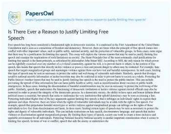 Is There Ever a Reason to Justify Limiting Free Speech. (2025, Jul 21). Retrieved from https://hub.papersowl.com/examples/is-there-ever-a-reason-to-justify-limiting-free-speech/