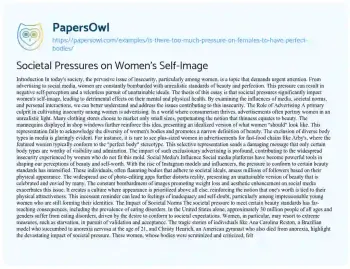 Societal Pressures on Women's Self-Image. (2021, May 09). Retrieved from https://hub.papersowl.com/examples/is-there-too-much-pressure-on-females-to-have-perfect-bodies/