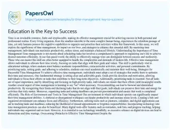 Education is the Key to Success. (2020, Feb 05). Retrieved from https://hub.papersowl.com/examples/is-time-management-key-to-success/
