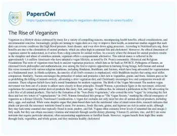 The Rise of Veganism. (2020, May 10). Retrieved from https://hub.papersowl.com/examples/is-veganism-detrimental-to-ones-health/