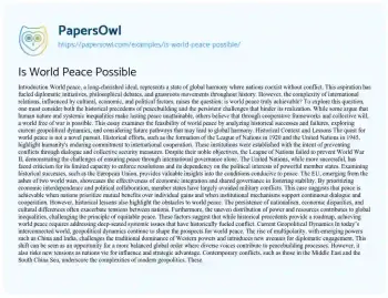 Is World Peace Possible. (2024, Dec 27). Retrieved from https://hub.papersowl.com/examples/is-world-peace-possible/