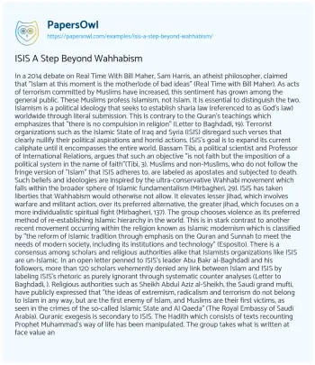 ISIS A Step Beyond Wahhabism. (2020, Jan 24). Retrieved from https://hub.papersowl.com/examples/isis-a-step-beyond-wahhabism/