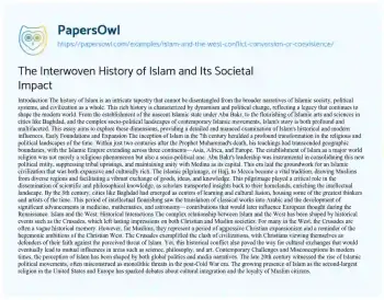The Interwoven History of Islam and Its Societal Impact. (2021, Jul 10). Retrieved from https://hub.papersowl.com/examples/islam-and-the-west-conflict-conversion-or-coexistence/