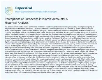 Perceptions of Europeans in Islamic Accounts: A Historical Analysis