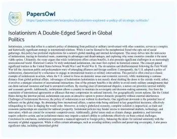 Ultimately, the essay argues that while isolationism offers certain benefits, it also presents significant challenges in an increasingly interconnected world.