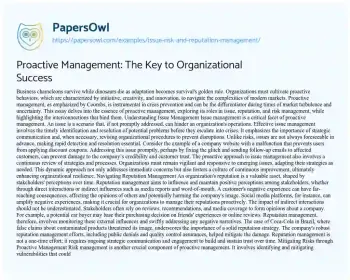Proactive Management: The Key to Organizational Success. (2019, May 05). Retrieved from https://hub.papersowl.com/examples/issue-risk-and-reputation-management/