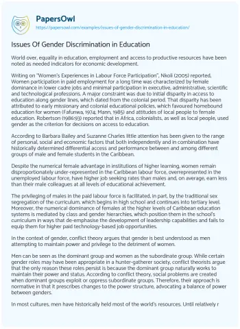 Issues Of Gender Discrimination in Education