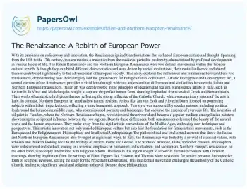 The Renaissance: A Rebirth of European Power. (2019, Dec 29). Retrieved from https://hub.papersowl.com/examples/italian-and-northern-european-renaissance/