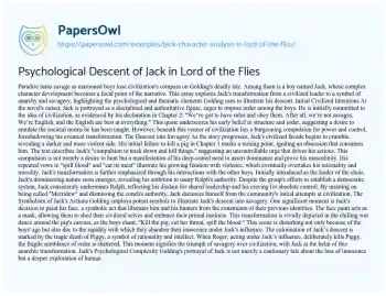 Psychological Descent of Jack in Lord of the Flies