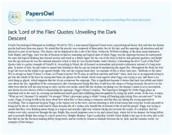 Jack 'Lord of the Flies' Quotes: Unveiling the Dark Descent. (2023, Aug 18). Retrieved from https://hub.papersowl.com/examples/jack-lord-of-the-flies-quotes-unveiling-the-dark-descent/