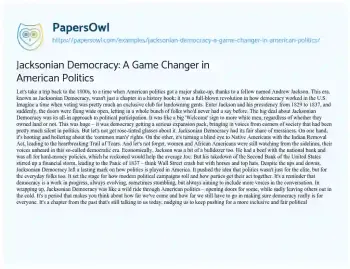 Jacksonian Democracy: A Game Changer in American Politics