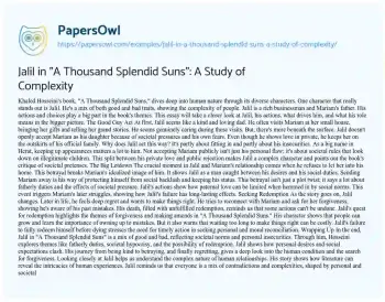 Jalil in “A Thousand Splendid Suns”: A Study of Complexity