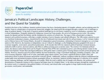 Jamaica's Political Landscape: History, Challenges, and the Quest for Stability. (2024, Mar 18). Retrieved from https://hub.papersowl.com/examples/jamaicas-political-landscape-history-challenges-and-the-quest-for-stability/