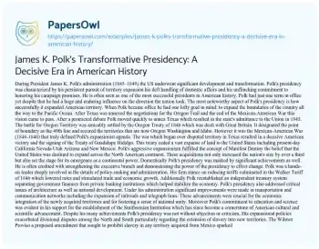 James K. Polk's Transformative Presidency: A Decisive Era in American History. (2024, Jul 06). Retrieved from https://hub.papersowl.com/examples/james-k-polks-transformative-presidency-a-decisive-era-in-american-history/