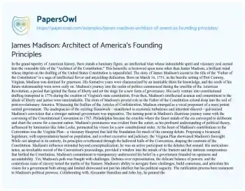 James Madison: Architect of America's Founding Principles. (2024, Mar 01). Retrieved from https://hub.papersowl.com/examples/james-madison-architect-of-americas-founding-principles/