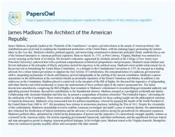 James Madison: The Architect of the American Republic. (2024, Jun 17). Retrieved from https://hub.papersowl.com/examples/james-madison-the-architect-of-the-american-republic/