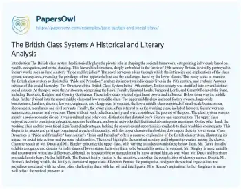 This essay seeks to examine the British class system as depicted in "Pride and Prejudice," analyze its impact on individuals' lives in the 19th century, and evaluate Austen's critique of this social hierarchy.