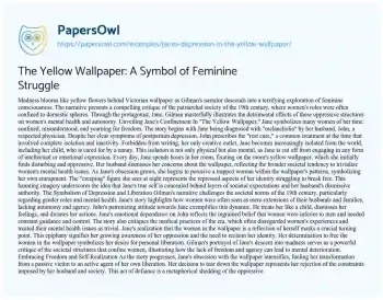 The Yellow Wallpaper: A Symbol of Feminine Struggle. (2020, Jan 19). Retrieved from https://hub.papersowl.com/examples/janes-depression-in-the-yellow-wallpaper/