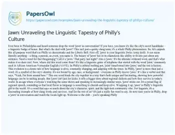 Jawn: Unraveling the Linguistic Tapestry of Philly's Culture. (2023, Dec 15). Retrieved from https://hub.papersowl.com/examples/jawn-unraveling-the-linguistic-tapestry-of-phillys-culture/