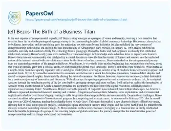 Jeff Bezos: The Birth of a Business Titan. (2024, May 28). Retrieved from https://hub.papersowl.com/examples/jeff-bezos-the-birth-of-a-business-titan/