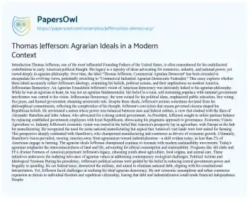 Thomas Jefferson: Agrarian Ideals in a Modern Context. (2019, Jul 04). Retrieved from https://hub.papersowl.com/examples/jeffersonian-democracy/