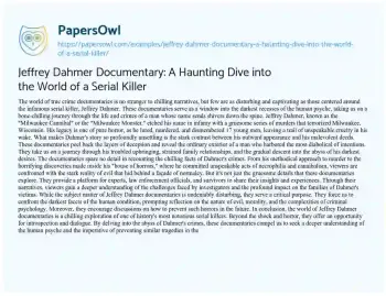 Jeffrey Dahmer Documentary: A Haunting Dive into the World of a Serial Killer. (2024, Feb 01). Retrieved from https://hub.papersowl.com/examples/jeffrey-dahmer-documentary-a-haunting-dive-into-the-world-of-a-serial-killer/