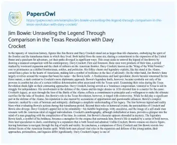 Jim Bowie: Unraveling the Legend Through Comparison in the Texas Revolution with Davy Crocket. (2024, Jan 16). Retrieved from https://hub.papersowl.com/examples/jim-bowie-unraveling-the-legend-through-comparison-in-the-texas-revolution-with-davy-crocket/