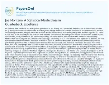 Joe Montana: A Statistical Masterclass in Quarterback Excellence. (2024, Jun 28). Retrieved from https://hub.papersowl.com/examples/joe-montana-a-statistical-masterclass-in-quarterback-excellence/