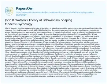 John B. Watson's Theory of Behaviorism: Shaping Modern Psychology. (2024, Jun 01). Retrieved from https://hub.papersowl.com/examples/john-b-watsons-theory-of-behaviorism-shaping-modern-psychology/