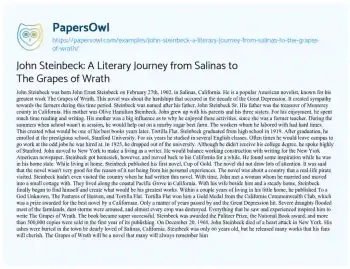 John Steinbeck: A Literary Journey from Salinas to The Grapes of Wrath. (2019, Jul 31). Retrieved from https://hub.papersowl.com/examples/john-steinbeck-a-literary-journey-from-salinas-to-the-grapes-of-wrath/