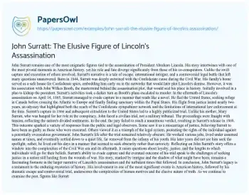 John Surratt: The Elusive Figure of Lincoln's Assassination. (2024, Feb 27). Retrieved from https://hub.papersowl.com/examples/john-surratt-the-elusive-figure-of-lincolns-assassination/