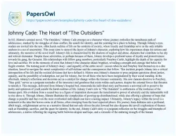 Johnny Cade: The Heart of "The Outsiders". (2024, Mar 18). Retrieved from https://hub.papersowl.com/examples/johnny-cade-the-heart-of-the-outsiders/