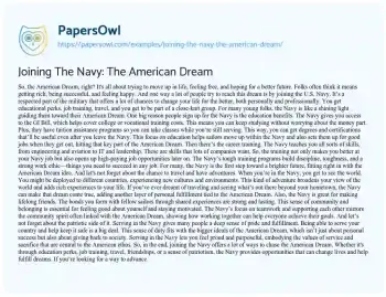 Joining The Navy: The American Dream. (2024, Sep 17). Retrieved from https://hub.papersowl.com/examples/joining-the-navy-the-american-dream/