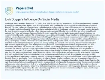 Josh Duggar's Influence On Social Media. (2024, May 01). Retrieved from https://hub.papersowl.com/examples/josh-duggars-influence-on-social-media/