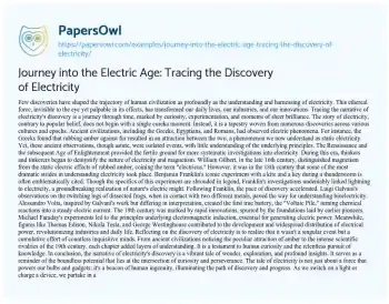 Journey into the Electric Age: Tracing the Discovery of Electricity. (2023, Oct 16). Retrieved from https://hub.papersowl.com/examples/journey-into-the-electric-age-tracing-the-discovery-of-electricity/