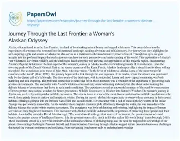 Journey Through the Last Frontier: a Woman's Alaskan Odyssey. (2025, Mar 27). Retrieved from https://hub.papersowl.com/examples/journey-through-the-last-frontier-a-womans-alaskan-odyssey/