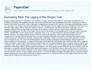 Journeying West: The Legacy of the Oregon Trail. (2023, Oct 26). Retrieved from https://hub.papersowl.com/examples/journeying-west-the-legacy-of-the-oregon-trail/