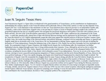 Juan N. Seguin: Texas Hero. (2024, Apr 22). Retrieved from https://hub.papersowl.com/examples/juan-n-seguin-texas-hero/
