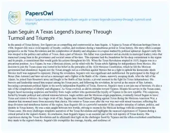 Juan Seguin: A Texas Legend's Journey Through Turmoil and Triumph. (2023, Nov 24). Retrieved from https://hub.papersowl.com/examples/juan-seguin-a-texas-legends-journey-through-turmoil-and-triumph/