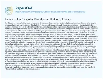Judaism: The Singular Divinity and Its Complexities. (2024, Jun 17). Retrieved from https://hub.papersowl.com/examples/judaism-the-singular-divinity-and-its-complexities/