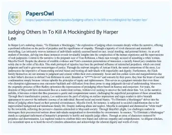 Judging Others In To Kill A Mockingbird By Harper Lee