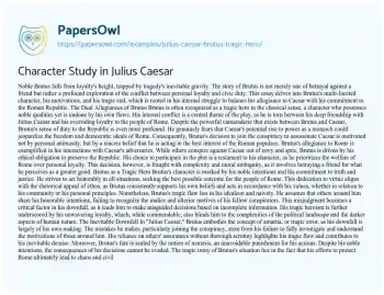 This essay will examine Brutus as a tragic hero in Shakespeare’s “Julius Caesar.” It will discuss his moral integrity, his tragic flaws, and the series of decisions leading to his downfall, highlighting the complex nature of his character and his role in the play’s tragic events. Additionally, PapersOwl presents more free essays samples linked to Hero.