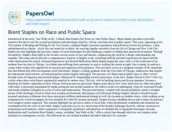 Brent Staples on Race and Public Space. (2023, Aug 09). Retrieved from https://hub.papersowl.com/examples/just-walk-on-by-brent-staples-summary-racial-stereotypes-and-their-impact/