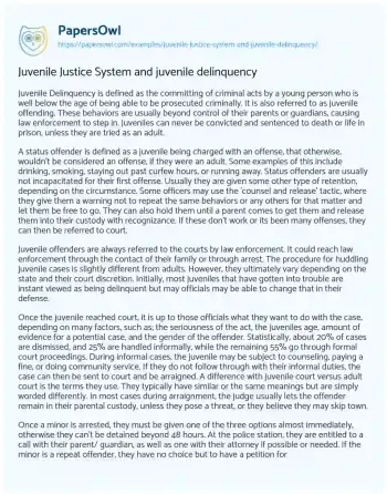 Juvenile Justice System and juvenile delinquency. (2022, Nov 16). Retrieved from https://hub.papersowl.com/examples/juvenile-justice-system-and-juvenile-delinquency/