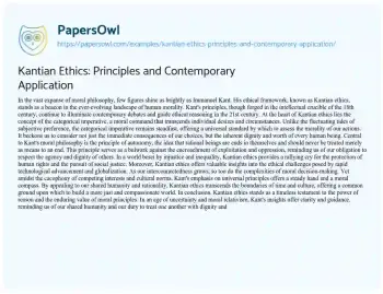 Kantian Ethics: Principles and Contemporary Application. (2024, Apr 22). Retrieved from https://hub.papersowl.com/examples/kantian-ethics-principles-and-contemporary-application/