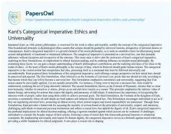 Kant’s Categorical Imperative: Ethics and Universality
