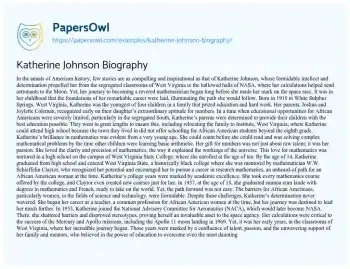 Katherine Johnson Biography. (2024, Apr 07). Retrieved from https://hub.papersowl.com/examples/katherine-johnson-biography/
